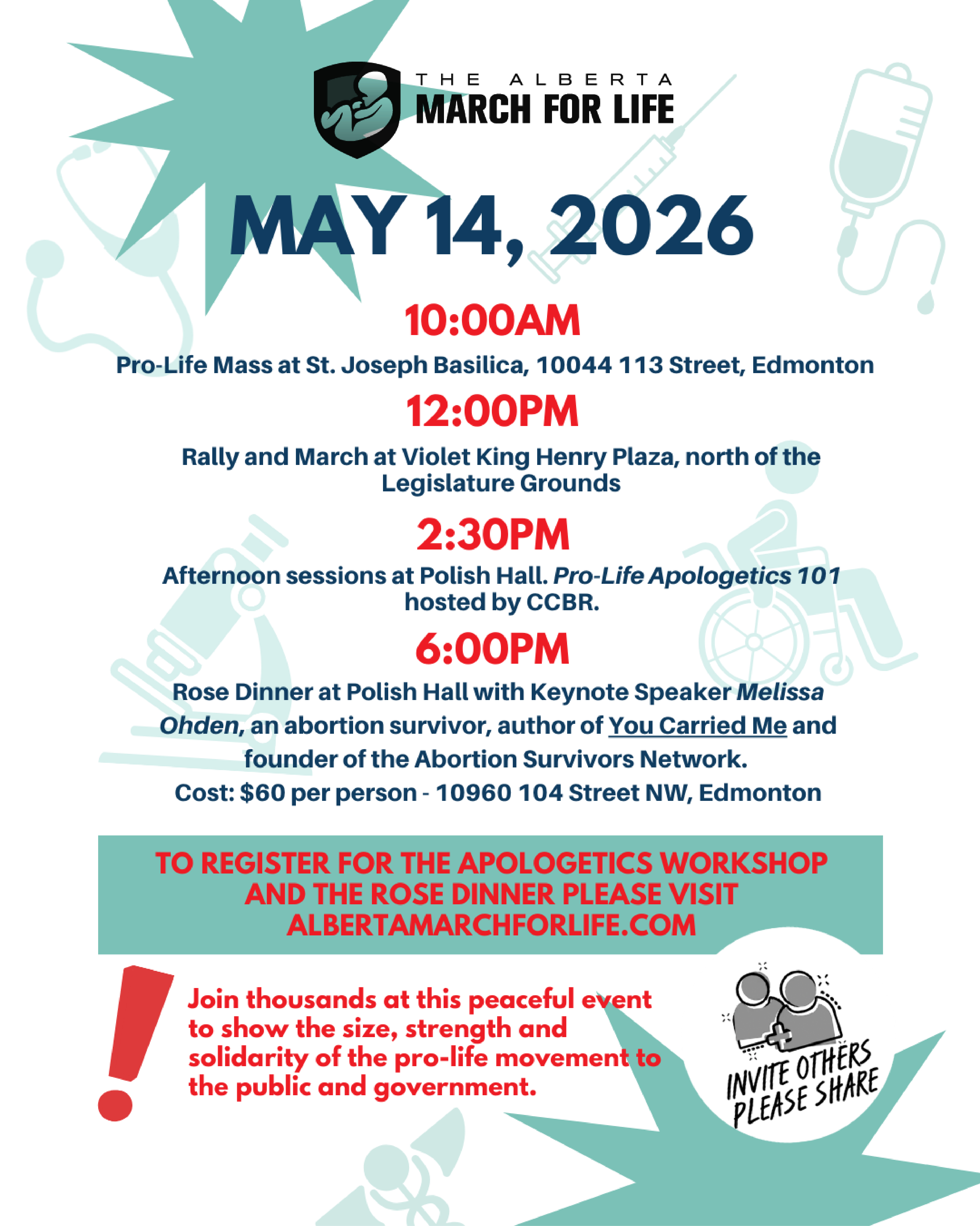 The Wilberforce Project will be co-hosting the Alberta March for Life on Thursday, May 14, 2026 at the Legislature in Edmonton. For additional details please visit the event site HERE